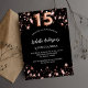 En klassisk svart bakgrund, dekorerad med ro guld-stjärnor. Anpassa och lägg till information om namn och party. Nummer 15 skrivs med ett skript för ballong stil.