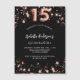 En klassisk svart bakgrund, dekorerad med ro guld-stjärnor. Anpassa och lägg till information om namn och party. Nummer 15 skrivs med ett skript för ballong stil.