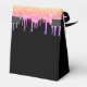 Elegant, klassisk, glamorös och gigantisk stil för en Quinceañera, 15:e födelsedagsfesten. Ett band med rosa och lila färgad och båge med regnbåge, färgad faux droppar i glitter, färgdroppar ser ut i lila, rosa och guld. Svart bakgrund. Med texten: Tack! Ålder: 15. Anpassa och lägg till ett namn skrivet med ett modernt handskript i stil med dekorationer. Om du bara vill behålla utslagen tar du bort exemplet namn lämnar du blankstegen eller symbolerna framför och efter namn. Lavendelns färgad.