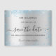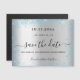 Ett giftigt och trendig Spara datummagnetkortet för en Quinceañera, 15:e födelsedagsfesten. En faux silver tittar bakgrund som dekorerats med blått faux glitter stoft. Anpassa och lägg till datum och namn/ålder. Texten: Spara datumet skrivs med ett stort trendig-handskript i stil.