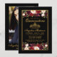 Quinceanera Blommig Foto Guld Ram Krona Svart Inbjudningar