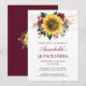 Dessa quinceanera-festinvitationer har en akvarellsolrosdesign med burgunderröda rosor, blommor, blad och strängljus. Personifiera dem med din egen text.