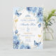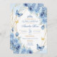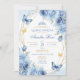 Quinceañera Blue Blommigt Guld Ram Butterfly Krona Inbjudningar