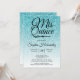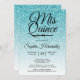 I en glamorös, modern turkotisk blå glitter-formgivning Quinceañera 15-födelsedagsinbjudan finns texten "Mis Quince" i handskrivet skript med svart chic. Perfekt 15:e födelsedagsfest inbjudan för en glamorös quinceañera, perfekt för henne, den på modet som kärlek modern mönster, gnistra, lyx och glam. Enbart designad för dig av Lycklig Dolphin Studio.