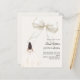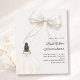 This sophisticated design features a large ivory bow adorned with delicate pearl details, paired with a graceful gown illustration.