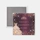 För en elegant Quinceañera, 15:e födelsedag. En burgundisk bakgrund färg. Dekorerad med gnistor från ro guld, en tiara krona och en klänning. Anpassa och lägg till namn, ålder och datum. Quinceañera är skrivet med ett modernt handskript i stil med dekorationer. Kan användas både som party favors eller som Spara datumpåminnelse för dina gäster.