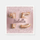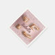 En napkin för en girig och glamorös Quinceañera, 15:e födelsedagsfesten. En dammig ro, rosa faux metallic tittar bakgrund med faux glitter droppar, färgdroppstift. Anpassa och lägg till ett namn. Namn är skrivet i mörk damstig ro med ett modernt handskript i stil. Nummer 15 skrivs med ett stil-teckensnitt med ballong.