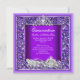 Magisk Sagoprinsessa Quinceanera 15-års födelsedagsfest. Glittrande häst och vagn och glittrande kunglig lila blommig silvertiara. Ram i silver och vitt. Fests prinsessa mis quince Fests för en flicka. Formell inbjudan. Anpassa för att ändra eller lägga till detaljer.