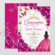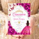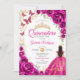 Quinceanera Fuchsia Pink Gold Floral Inbjudningar
