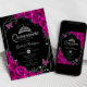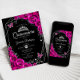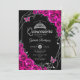 Quinceanera Fuchsia Rosa Black Silver Blommigt Inbjudningar