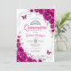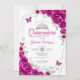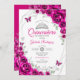 Quinceanera Fuchsia Rosa Silver Blommigt Inbjudningar