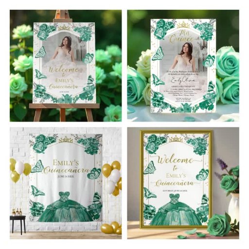 Quinceanera Grönt Sittdiagramskylt Fjärilar Poster