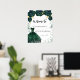 En välkommen poster för en Quinceañera, 15:e födelsedagsfesten. En vit bakgrund som dekoreras med grönt klädblommor, ro och konetti. Anpassa och lägg till namn och datum.