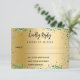 Framsida: En guldfärgad övertoningsbakgrund som dekoreras med grönt-konfetti. Anpassa och lägg till ditt namn och data. Tillbaka: en grönt klänning och grönt ro.