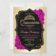 Guld svartvit rosa Quinceanera firande inbjudan. Har skriptteckensnitt, shock rosa ro, tiara och konetti. Konstruktion för rosa i Classy fuchsia med faux glitter guld. Perfekt för en elegant glam firande.