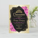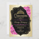 Guld svartvit rosa Quinceanera firande inbjudan. Med skriptteckensnitt, pastel rosa ros, tiara och confietti. Utformning av rosa med Faux glitter guld. Perfekt för en elegant glam firande.