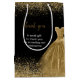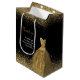 Den här chicen Gift Bag har en vacker vattenfärgad klänning i guld med temat elegant på svart bakgrund med faux glitter överst och grund på båda sidor med ett speciellt budskap på vardera sidan. Texten kan vara personlig till kostym era egna krav.