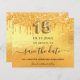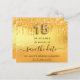 Ett giftigt och trendig Spara datumkortet för en Quinceañera, 15:e födelsedagsfesten. Ett modernt faux guld tittar bakgrund som dekoreras med faux glitter drops, färgdroppstift. Anpassa och lägg till ett datum och namn. Texten: Spara datumet skrivs med ett stort trendig-handskript i stil. Nummer 15 med ett stil-teckensnitt med ballong.
