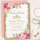 Quinceanera Guld Glitter Krona Rosa Blommigt Inbjudningar