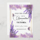 Detta "Quinceañera Guld, Lila, Lavender Blommigt Butterfly Save the Date"-kort är en fantastisk blandning av elegans och stollig. Med känsliga lavender- och lila-blommigtar som är utrustade med skarpa detaljer om guld, blir den ännu bättre av en fjärils roliga bild, som symboliserar omvandling och skönhet. Den här perfekten för att ange tonen för din quinceañera firande, Rädda datumkortet fångar kärnan av din speciella dag med en gnutta glöd och naturens skönhet. Se till att dina gäster är glada över denna oförglömliga inbjudan.