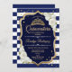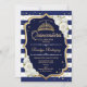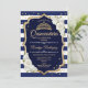 Vit inbjudan från Quinceanera firande till marinen guld. Med marinvit rand, skriptteckensnitt, vit ros, tiara och konetti. Klassdesign med faux glitter guld. Perfekt för en elegant glam firande.