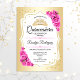 Guld, svart, vit Quinceanera firande inbjudan. Med skriptteckensnitt, pastel rosa ros, tiara och confietti. Utformning av rosa med Faux glitter guld. Perfekt för en elegant glam firande.
