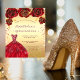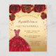 Quinceañera guldröd glitterklänning blomster budge flygblad
