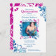 Lättare skörd ditt foto i den här isblått och shock rosa Quinceañera-inbjudan. Presentera ditt foto i en vacker blommigt ram. Se till att dina gäster får samordnade kuvert, adressetiketter för återvändande och party. Inbjudningar och tillbehör till denna kom i andra storlekar och färg variationer. Denna utformning är perfekt för en Cinderella Princess quinceanera, men är också mångsidig för vintern eller vår quinceanera firande.