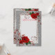 Denna inbjudan är skapad på kvalitetskartong och har falskt silverglittertryck på framsidan med falskt rhinstensutseende och röda rosor med röda rullar som dekorationstryck. Massor av utrymme för att anpassa din text. Baksidan har falskt silverglitter bakgrund med samma stora röda rosor rulltryck och falskt rhinstensbeslag och ett exempel foto som du kan ändra till ditt eget. Anpassa eller köp som bilden för en handskriven touch.