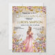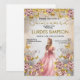 Elegant invitation for a debutante party in shades of rose with touches of Gold with an illustration of a dress.