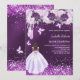 För en elegant Quinceañera. Ojämnt fördelad lila färgad. Dekorerad med konetti, balerina tå, fjärilar, ro och en flicka i en klänning. Anpassa och lägg till information om namn, ålder/text och party. Namn är skrivet med ett handskript i stil