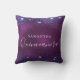 En kudde för ett Quinceañera, 15:e årligt flickors rum. En djup lila med blått faux glitter damm. Lila färg är ojämn. Texten: Quinceañera är skriven i vitt med ett stort modernt, handskript i stil. Anpassa och lägg till ett namn.