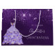 En presentpåse för en girig och glamorös Quinceañera, 15:e födelsedag. En djup lila bakgrund som dekoreras med faux glitter damm. Lila färg är ojämn. Anpassa och lägg till ett datum och namn. Namn är skrivet med ett modernt handskript i stil