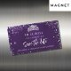Spara datummagnetkortet för en Quinceañera, 15:e födelsedagsfesten. Ojämnt fördelad lila färgad. Dekorerad med faux silver glitter sparkles och tiara. Texten: Spara datumet skrivs med ett stort trendig-handskript i stil.