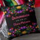 Quinceañera-kudden med mexikanska fiesta-blommor - eller känn dig fri att anpassa som en vacker keepsakpresenten för att fira vilken tillfälle som helst. Den här färgstarka och livfulla Quinceanera-kudden har mexikanska konstblommor i rosa lila gult röd blått och grönt. Mallen är konfigurerad så att du kan anpassa redot med tillfälle, namn och datum. Bläddra i butiken om du vill ha matchande inbjudningar och tillbehör.