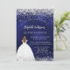 En modern, snyggt och glamorös inbjudan till en Quinceañera, 15:e födelsedagsfesten. En marin blå bakgrund med faux Silver konetti, en flicka med en boll-gryning. Den blå färg är ojämn. Namn är skrivet med ett modernt handskript i stil. Anpassa och lägg till information om party.