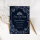 Navy blue and silver Quinceanera celebration save the date card. Features, script font, glitter silver butterflies, watercolor roses and tiara. Perfect for an elegant princess style glam celebration. Personalize with your own details. Printed Zazzle cards or instant download digital printable template.