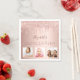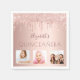 En napkin för en girig och glamorös Quinceañera, 15:e födelsedagsfesten. En ro guld-bakgrund med droppar, färgdroppstift. Texten: namn är skrivet i mörk ro guld med ett stort modernt, handskript i stil. Anpassa och lägg till namn, text och 3 av dina egna foton av födelsedagsflickan, hennes familj, vänner eller husdjur.
