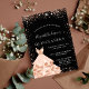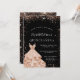 En modern, snyggt och glamorös inbjudan till en Quinceañera, 15:e födelsedagsfesten. En chic svart bakgrund med ro guld faux glitter och en klänning. Namn är skrivet med ett modernt handskript i stil. Anpassa och lägg till information om party.