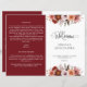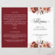 Eleganten quinceañera-programmet har en fantastisk handmålad fin blomma och löv i en kombination av rosa, dammig ro, persika, burgundi, maron och sage-toner. Använda av modern information om kalligrafi. Lämnat sidor i elegantens burgunda bakgrund färg. Anpassa programmet på båda sidor och lägg till all information eller alla meddelanden du vill ha. Finns även på spanska. Obs! Det här programmet kommer att bli platt och det krävs att det viks ner i mitten för att samlas. Standardvärdesprogrammet rekommenderas.