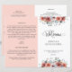 Eleganten quinceañera-programmet har en fantastisk handmålad fin blomma och löv i en kombination av rosa, dammig ro, persika, blått. dammblått och sagetoner. Använda av modern information om kalligrafi. Några sidor i elegantens rosa, färg. Anpassa programmet på båda sidor och lägg till all information eller alla meddelanden du vill ha. Finns även på spanska. Obs! Det här programmet kommer att bli platt och det krävs att det viks ner i mitten för att samlas. Standardvärdesprogrammet rekommenderas.
