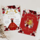 Quinceañera Red Blommigt Charro Guld Horses Inbjudningar