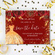 Observera att det här Spara datumet är pappert och mycket tunt. Kuvert ingår inte. Om du vill ha ett tjockare Spara datumkortet (samma design) kan du besöka vår butik. Ett girigt och trendig Spara datum för en Quinceañera, 15:e födelsedagsfesten. En snyggt röd bakgrund dekorerade röd ros, gyllene färgad faux glitter-gnistor och en klänning. Anpassa och lägg till datum och namn/ålder. Texten: Spara datumet skrivs med ett stort trendig-handskript i stil.