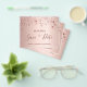 Observera att detta datum är pappert och mycket tunt. Kuvert ingår inte. Om du vill ha ett tjockare kort (samma design) kan du besöka vår butik. Ett girigt och trendig Spara datum för en Quinceañera, 15:e födelsedagsfesten. En feminin rosa, ro guld faux metallisk tittar bakgrund som dekorerats med stjärnor. Anpassa och lägg till datum och namn/ålder. Texten: Spara datumet skrivs med ett stort trendig-handskript i stil.