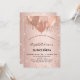 För en elegant Quinceañera, 15:e födelsedag. En ro-guld tittar metallisk bakgrund. Dekorerad med ro guld, rosa faux glitter, färgdroppstift och ballonger. Anpassa och lägg till information om namn och party. Namn är skrivet med ett handskript i stil
