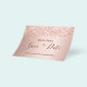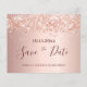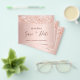 Observera att detta datum är pappert och mycket tunt. Kuvert ingår inte. Om du vill ha ett tjockare kort (samma design) kan du besöka vår butik. Ett girigt och trendig Spara datum för en Quinceañera, 15:e födelsedagsfesten. En feminin rosa, ro guld faux metallisk tittar bakgrund som dekorerats med ro faux glitter damm från guld. Anpassa och lägg till datum och namn/ålder. Texten: Spara datumet skrivs med ett stort trendig-handskript i stil.