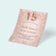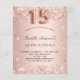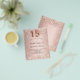 Observera att inbjudan är papper och mycket tunn. Kuvert ingår inte. Om du vill ha mer omfattande inbjudningar (samma design) kan du besöka vår butik. För en elegant Quinceañera, 15:e födelsedagsfesten. En övertoningsbakgrund för ro guld. Dekorerad med damm från ro guld faux glitter. Anpassa och lägg till information om namn och party. Namn är skrivet med ett handskript i stil. Nummer 15 skrivs med ett stil-teckensnitt med ballong.