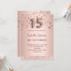 En modern, snyggt och glamorös inbjudan till en Quinceañera, 15:e födelsedagsfesten. En bakgrund i ro guld med elegant ro guld dropp, målardropp. Namn är skrivet med ett modernt skript för färgaden ro guld i mörk, skrivet med stil. Anpassa och lägg till information om party. Nummer 15 är skript med stil som ballong.