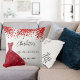 Quinceanera röd klänning vit namn kudde