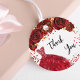 En favorittagg för trendig och giftermål för en Quinceañera, 15:e födelsedagsfesten. En snyggt vit bakgrund som dekoreras med röda blommor och en röd klänning. På framsidan: Texten: Tack är skriven med ett stort trendig-handskript i stil. Tillbaka: Texten: Tack för att ni kom. Anpassa och lägg till namn och händelse/text.